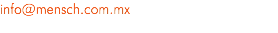 CONTACTO +(55) Álvaro Obregón 270 int. 230, Colonia Condesa, Delegación Cuauhtémoc, C.P. 06100 info@mensch.com.mx facebook.com/Mensch-MX @menschmx 1253 4967 ext. 230