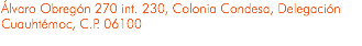 +(55) Álvaro Obregón 270 int. 230, Colonia Condesa, Delegación Cuauhtémoc, C.P. 06100 info@mensch.com.mx 1253 4967 ext. 230